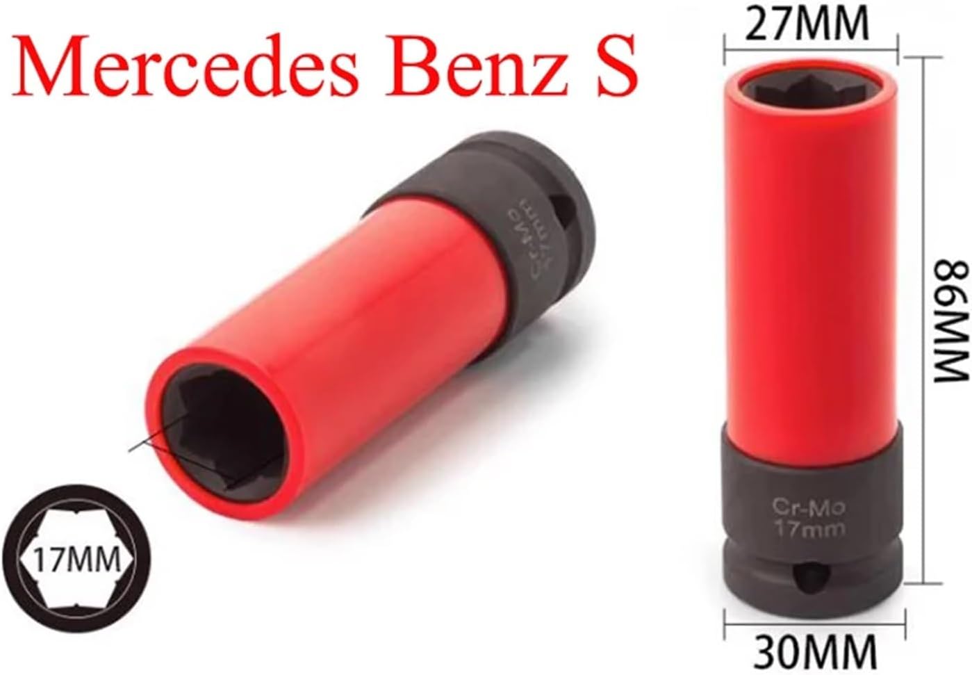 17 mm 19 mm 21 mm 22 mm Tyre Compatible with Anti-Theft Screw Sleeve Universal Wheel Lock Nut Removal Socket Wrench Compatible With Mercedes Benz S Series Compatible with Tesla..Origin : Mainland China.