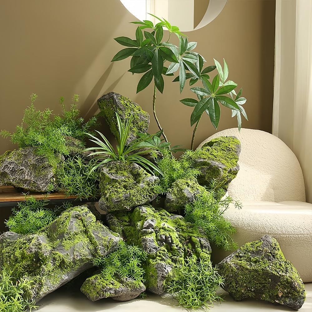 6 PCS Faux Landscape RocksBring the beauty of nature indoors or enhance your outdoor garden with these realistic moss stonesMade from PU foam with carefully applied coloring, they mimic real moss-covered rocks perfectlyLightweight and versatile, they can be used in gardens, terrariums, aquariums, or as indoor decorative accentsThe set includes six stones of varying sizes and shapes, providing endless possibilities for creative display arrangementsEnjoy a natural, low-maintenance way to elevate your space with a touch of greenery and textureProduct Details:Name: Faux Landscape RocksSizes Available: Small, LargeMaterials: PU FoamPackaging: 6 x Faux RocksNote: Due to manual measurement, there may be slight differences in size. Please understand