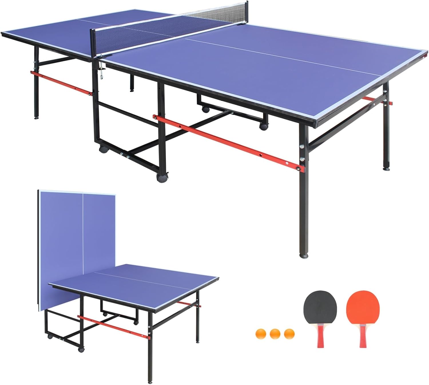 We design high-quality recreational tables to bring fun, fitness, and family bonding into your home. Our products are durable, portable, and easy to set up, offering hours of safe entertainment for all ages. Product Features Enjoy realistic play on a smooth 12mm MDF tabletop with consistent bounce. The table folds easily for compact storage and mobility with built-in wheels and handles. Solo practice mode allows one-half folding for independent skill training. Sturdy frame with rubber suction pads protects floors and ensures stable gameplay. Lightweight yet durable, perfect for both indoor and outdoor use. Product Specifications Table Size: 96” x 48” x 30” Tabletop Material: 12mm MDF with aluminum frame Leg Material: Anti-rust steel with adjustable feet Accessories: Net & post set, 2 paddles, 3 balls Folded Storage: Compact with built-in carrying handles Recommended Use: Indoor & Outdoor Family Play Weight Capacity: Standard recreational play Customer Service Assembly is simple with clear instructions and included components. The table can be set up by one person in minutes. For any issues during setup or usage, our responsive customer service team is ready to assist.