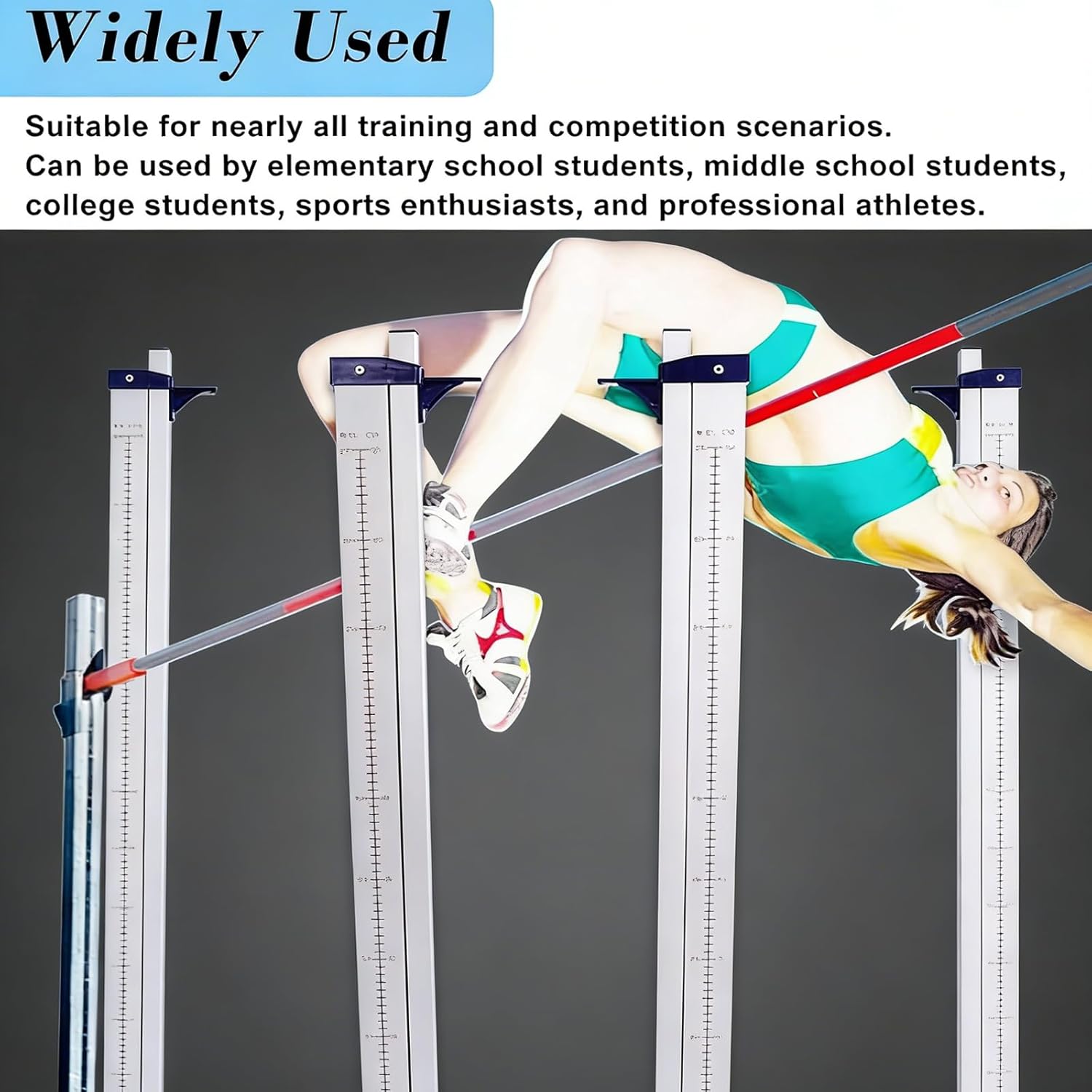 Our high jump tester is a professional sports equipment, ideal for daily teaching, amateur training, and professional competition. It is suitable for almost all training and competition scenarios.Specifications:Material: Aluminum AlloyScale: Metric (cm)Modifference: YesBase Dimensions: 31 x 33 cm (12.2 x 12.9 inches)Height Adjustment Range: 30 cm (1 ft) to 230 cm (7.5 ft) in 1 cm (1/4 inch) incrementsPackage Contents:1 pair of training high jump stands