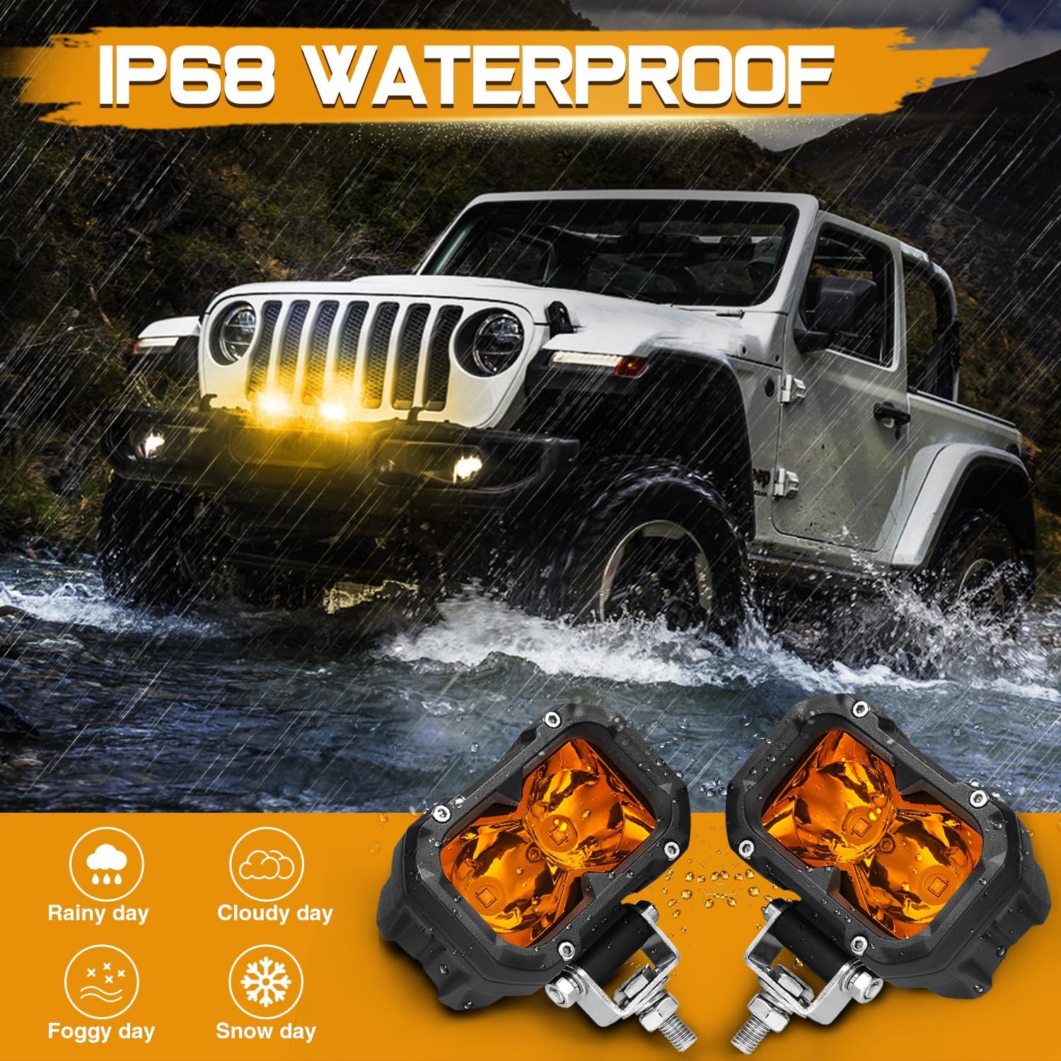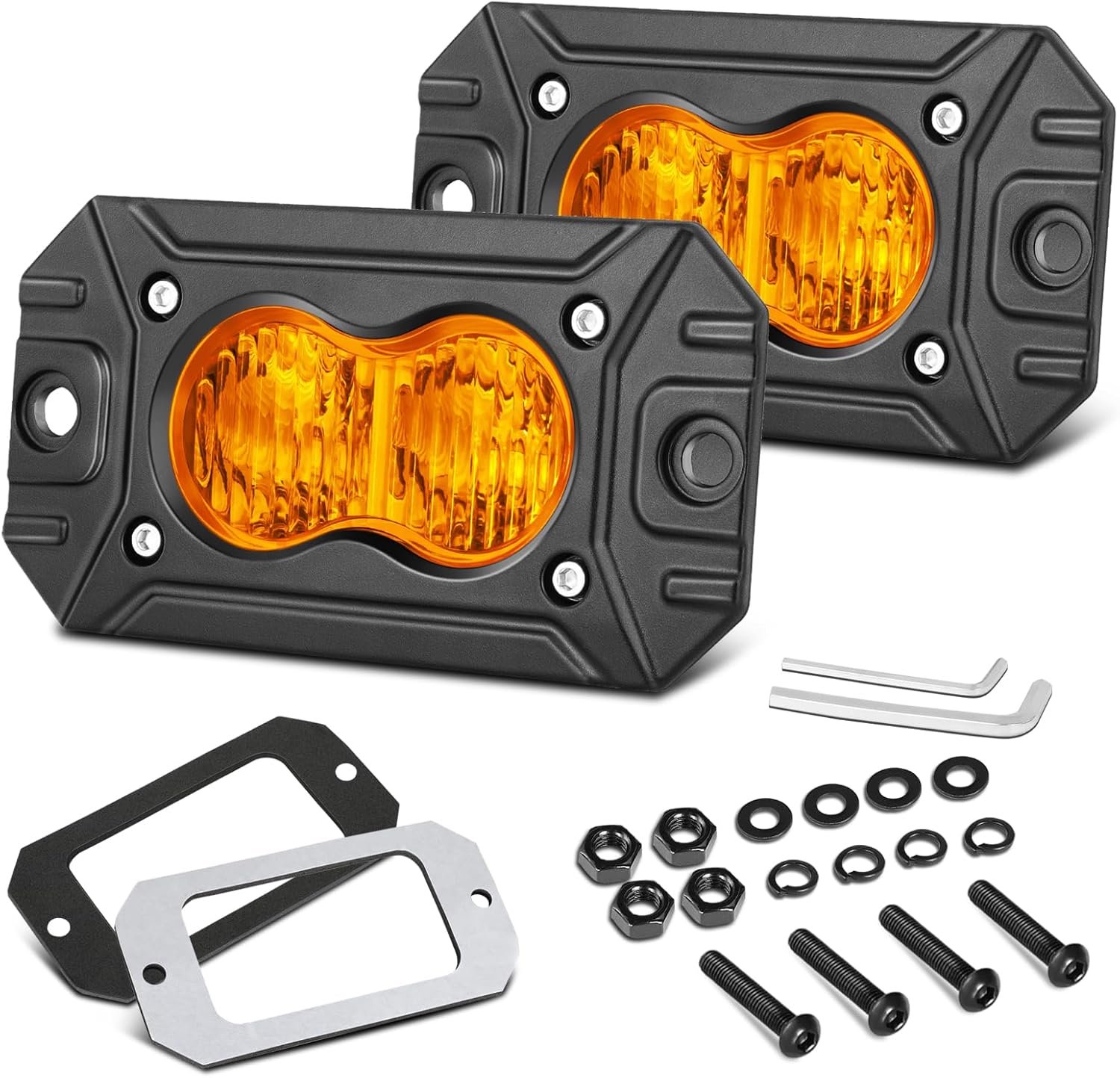 | Included Components | 2pcs amber led pod lights, mounting brackets |