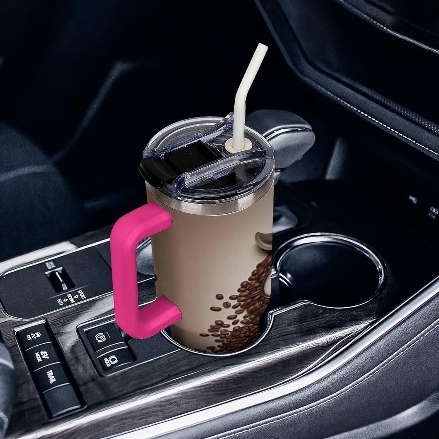 The simple tumbler is double walled and vacuum insulated to keep your drink hot or cold for hours.The cup is outfitted with an ergonomic handle, that is aesthetically designed for comfort. It comes with a straw lid and a straw so you can enjoy your favorite beverage on the go.The bottom of the cup is conveniently sized to fit car cup holders for easy portability. Fill your insulated tumbler with coffee, sweet tea, ice water, milkshakes, juice, cocktail, lemonade and more!If you are looking for the perfect birthday or holiday gift, don't miss this one. It can be a surprise gift for women, friends, family, couples.If you have any questions during your purchase or gifting process, please reach out to us—we're happy to help!