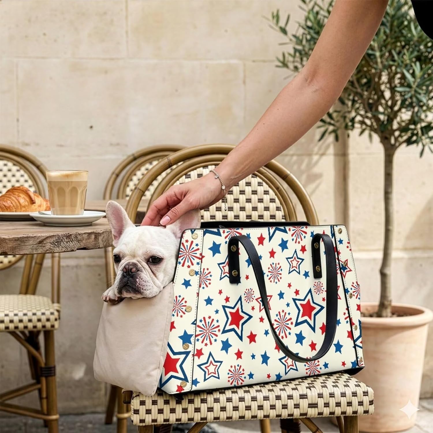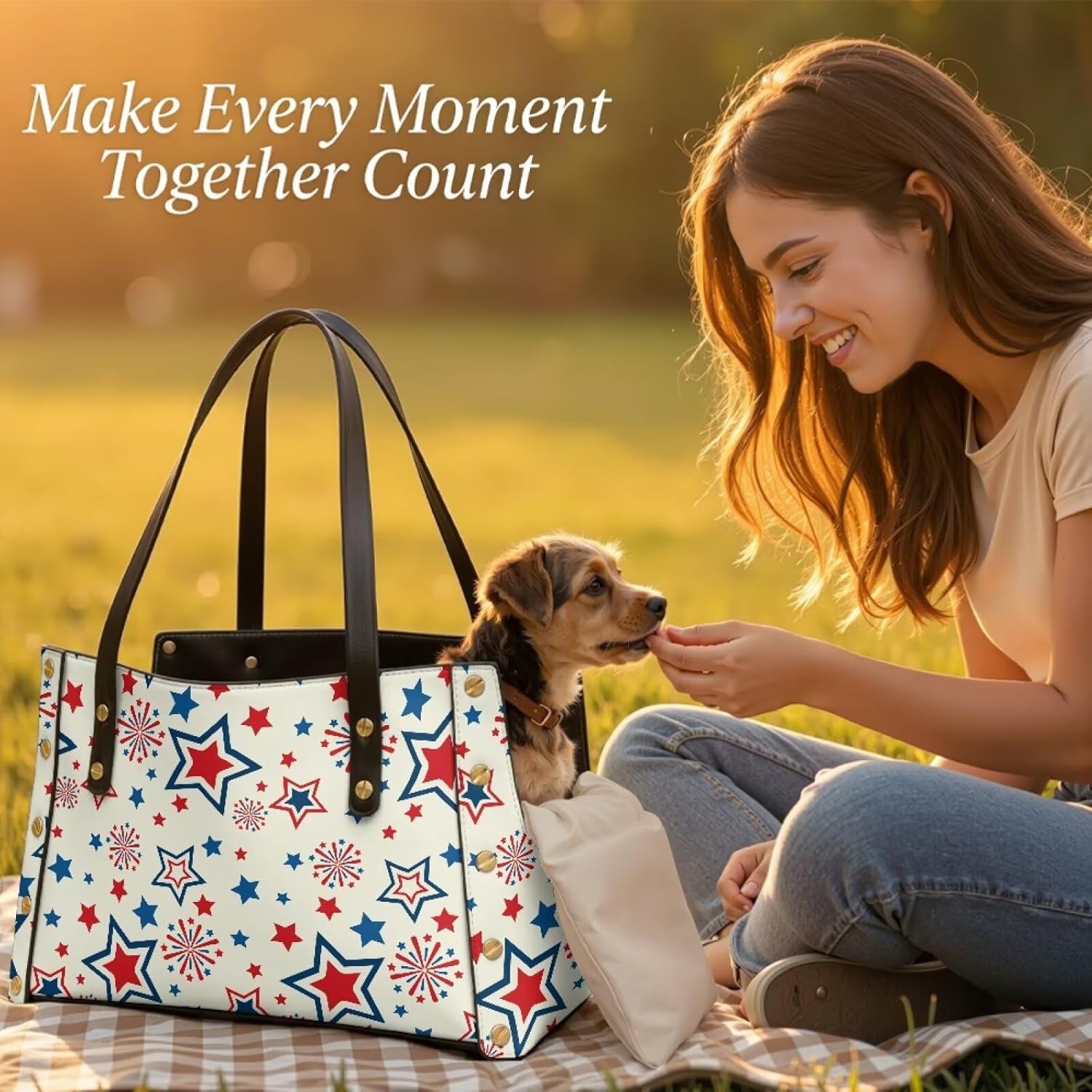 Premium Durable Material is crafted from waterproof wear-resistant PU leather, easy to wipe clean with reinforced rivets for better load capacity, 40×17×24cm for daily and travel use. Comfortable with removable machine-washable plush cushion to ease anxiety, breathable design keeps pets cool and cozy. Open-Top Design fits small pets under 15 lbs (cats, mini dogs), open-top for free interaction and easy pet access. Carry Design has sturdy dual handles for hand/shoulder carry, reduces strain, ideal for walks, vet visits and short trips. Stylish Versatile Tote features sleek design as a fashion tote, flat shipping for tool-free assembly, perfect for pet outings and daily use.