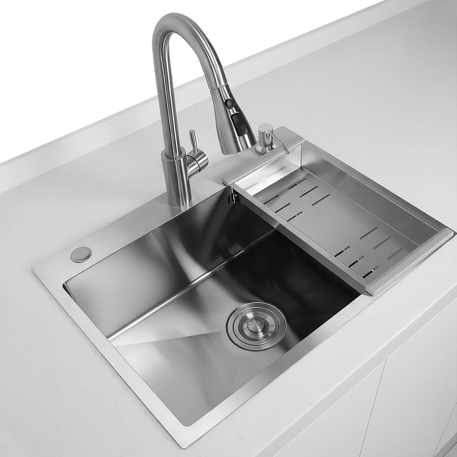 Specification: Size: 600.00 x 450.00 x 200.00 mm/ 23.62 x 17.72 x 7.87 inchesNumber of Holes: TwoOrigin (country or region): Mainland China (Origin)Material: Stainless steelFeatures: With Sink style: Single slot Note:Due to different monitor settings and lighting conditions, the actual color of the item may vary slightly from the pictures. Thanks for your understanding!Please allow a 1-2 cm difference in measurements due to manual measuring.Package includes:1 x Sink1 x Drainer1 x Drain pipe1 x Kitchen 1 x Soap dispenser2 x Hot and cold water pipes2 x Angle valves1 x Drain basin