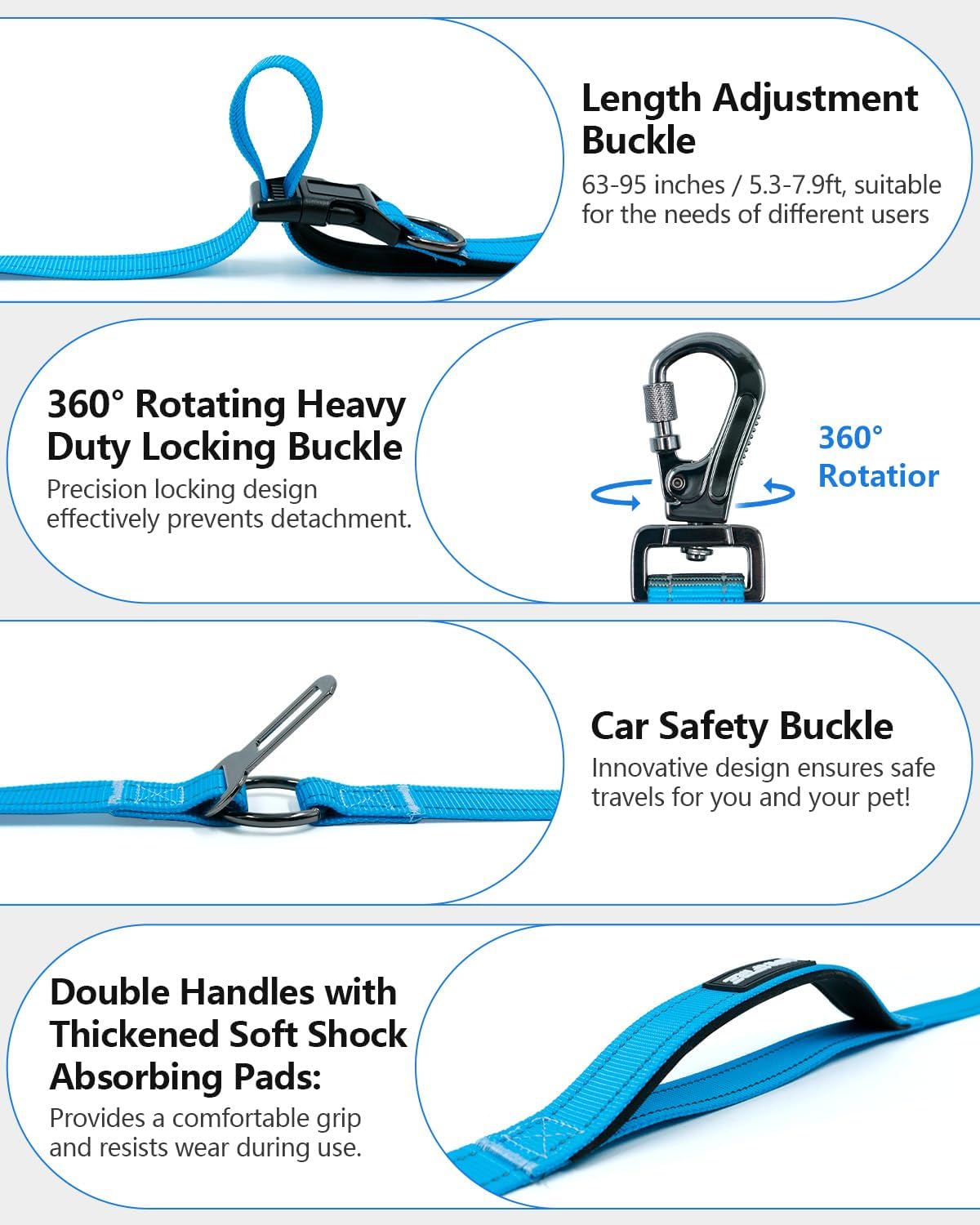 Hands Free Dog Leash, Multifunctional Crossbody Dog Leash, Long Waist Belt with Car Seatbelt and Double-Sided Reflective Stitches for Medium and Large Dogs Walking, Jogging