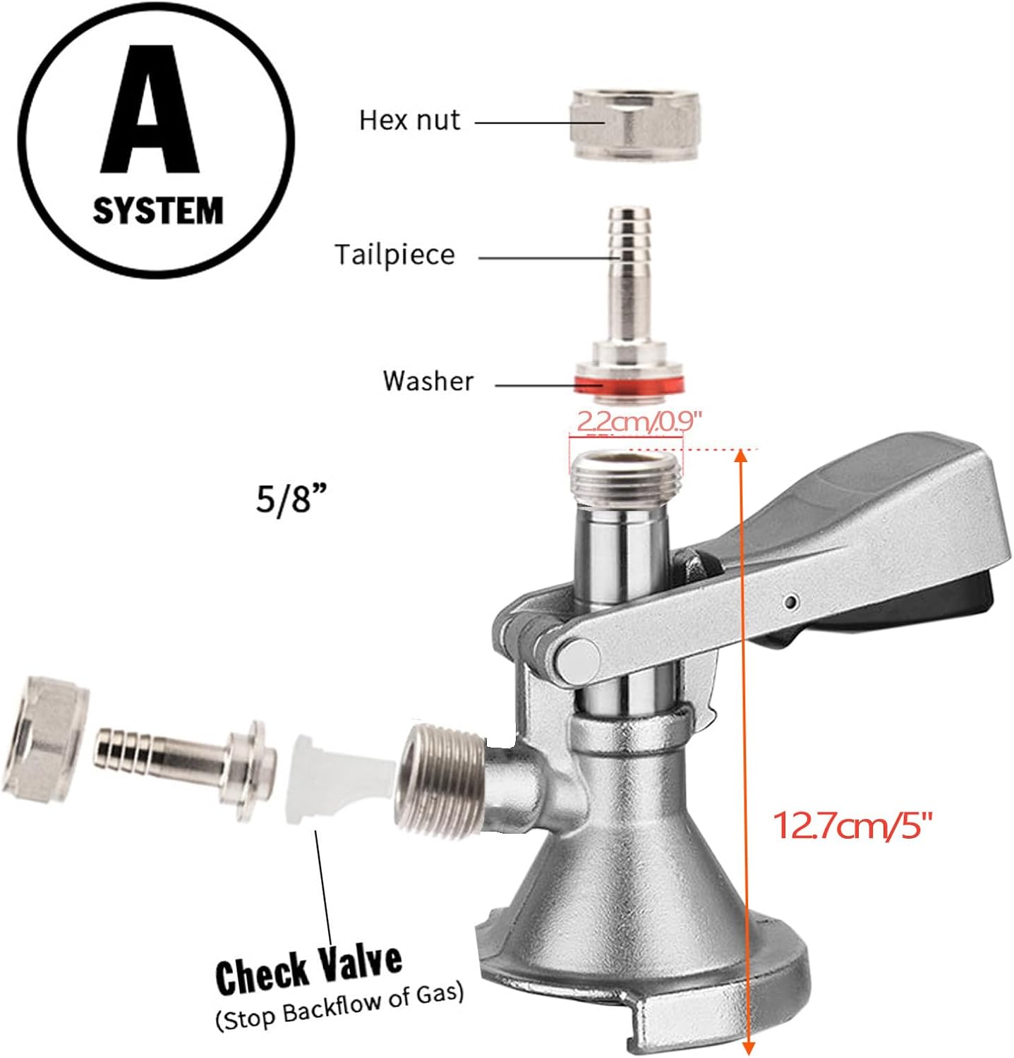 Product name: beer keg couplerProduct features: Stainless steel with pressure relief valve distributor Plate well distributor A-type barrel distributor keg couplerProduct material: Brass body, stainless steel probeProduct type: type A,type A (with pressure relief valve),Product size: [type A] Upper opening diameter:: 2.2cm/0.9'',height:12.7cm/5''Use: for beer barrels, wine utensils, beer accessories, dispensing beer, red wine, carbonated drinksApplicable places: bars, restaurants, family gatherings, outdoor camping, partyAbout color difference:Product pictures are all taken in real life, but due to the influence of light, display and other parameters, the color of the actual items received may be different, please refer to the actual product.Note:Due to different measuring tools and measurement methods, there may be errors in the size and weight of the beer barrel connector, please refer to the actual product.