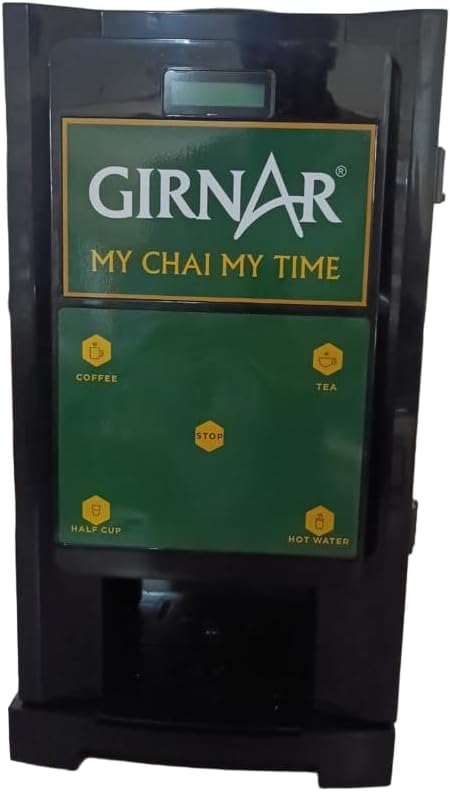 QUALITY HOT TANK MATERIALThe hot tank is constructed from durable SS 304 material with a 3-liter capacity, ensuring longevity and reliability. Experience the ultimate convenience in beverage dispensing with our 2- in-1 Girnar Instant Premix Based Tea Coffee Vending Machine. Designed for efficiency and ease of use, this vending machine is perfect for tea enthusiasts who crave a quick and delicious hot beverage for two different tastes. SIMPLE BUTTON CONTROLSJust insert a pod, select your desired cup brew size, and brew a great-tasting cup in under a minute. COMPACT DESIGN & ENERGY EFFICIENTSleek and space-saving design for any environment – be it your office, home, or communal space. Our Coffee Tea Fits seamlessly into any setting, enhancing the aesthetic appeal. Designed with energy efficiency in mind, ensuring minimal environmental impact. Save both time and resources without compromising on the quality of your hot drinks. COMMERICAL-GRADE DURABILITYBuilt to withstand heavy usage, making it perfect for office spaces, public areas, and high-traffic environments. Low maintenance requirements for worry-free operation. HAPPINESS DOESN’T RESULT FROM WHAT WE GET, BUT WHAT WE GIVEOur Girnar chai Vending Machine is the best gift for Tea and Coffee Lovers. Multiple flavors increase durability for tea lovers and as per demand we used best ingredients for Cardamom flavor & Masala flavor. SATISFICATION GURANTEEDWe believe in the quality of our Coffee maker and the satisfaction of our customers is our top priority. If you are not happy with the chai machine for any reason, please feel free to contact us to get a Full Refund