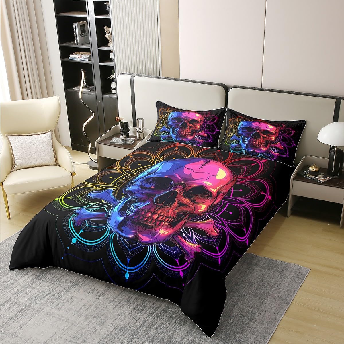 Package Include: Duvet Cover and Pillowcase, no comforter or sheet Quality duvet cover set pattern bedding set, simply decorating your rooms any time you want, bringing you fresh feel for year round use Material: Made from 100% Cotton Size Information: Twin size 2pcs duvet cover set: 1 Duvet Cover 68" x 90" 173 x 229cm, 1 pillowcase 20" x 30" 51x75cm Full size 3pcs duvet cover set: 1 Duvet Cover 80" x 90" 200 x 229cm, 2 pillowcase 20" x 30" 51 x 75cm Queen size 3pcs duvet cover set: 1 Duvet Cover 90" x 90" 229 x 229cm, 2 pillowcase 20" x 30" 51 x 75cm King size 3pcs duvet cover set: 1 Duvet Cover 104" x 90" 264 x 229cm, 2 pillowcase 20" x 36" 51 x 92cm Personalize your bedroom: Beautiful design and colorful print, making your bedroom unique and bringing you a wonderful dream Washing instructions: Machine wash separately in cold water, hang dry, do not bleach Occasion: The cute soft duvet cover bedding sets designed for children, adults, men, women, teens. This duvet cover set is also suitable for all seasons, spring, summer, autumn and winter. Warm Tips: There may be some slight differences between the color tone of the pictures and that of the actual items due to lighting effects, monitor's brightness, etc.