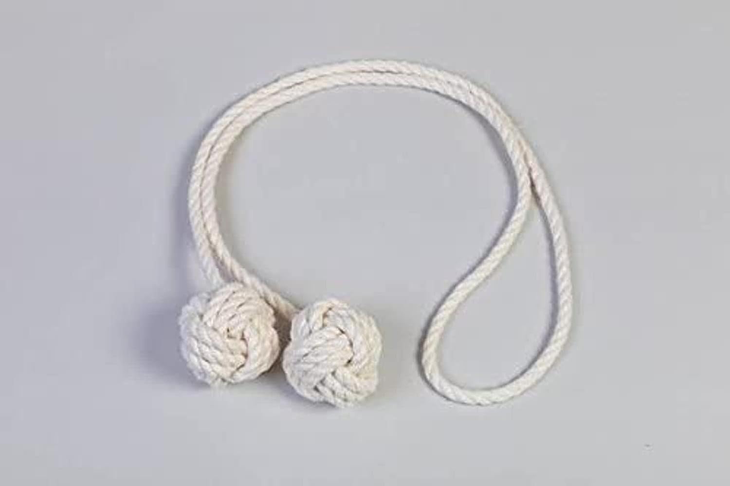 Cotton Rope Tie-backs/Rope ties Curtain Tiebacks / shabby chic windows/ Rope Tiebacks/ nautical ties/ nursery decor white.white cotton Rope Curtain Tiebacks. The thickness of the rope I use is 1cm. The tiebacks do not come with wall hooks. Knot size is approximately 3 inches (8cm)