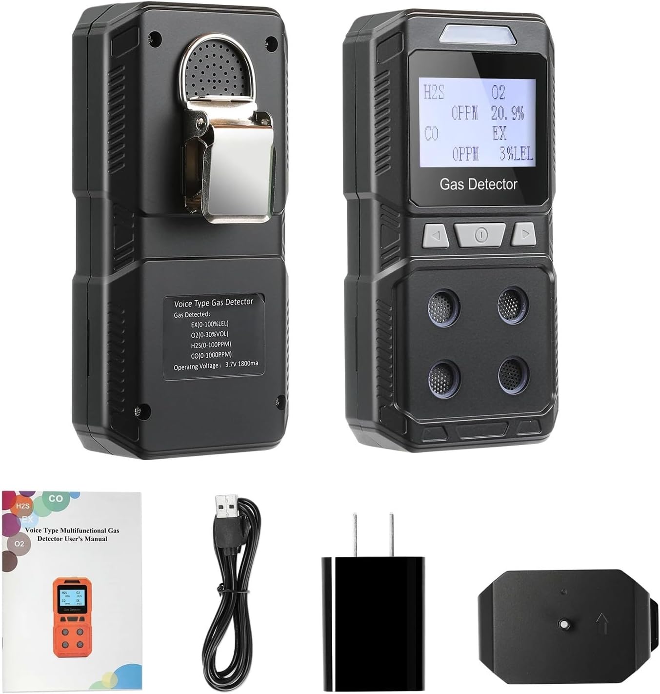Recharable Portable 4 Gas Detector Multi Gas Monitor Air Quality Tester Analyzer High Precision EX O2 H2S CO 4 in 1 Gas Meter