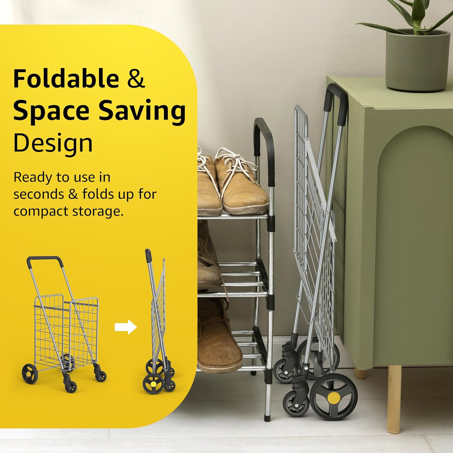Our Modern Space Shopping Cart & 360° Swivel Wheels | Foldable Collapsible & Lightweight | Perfect for Groceries Laundry Utility Cart - Silver