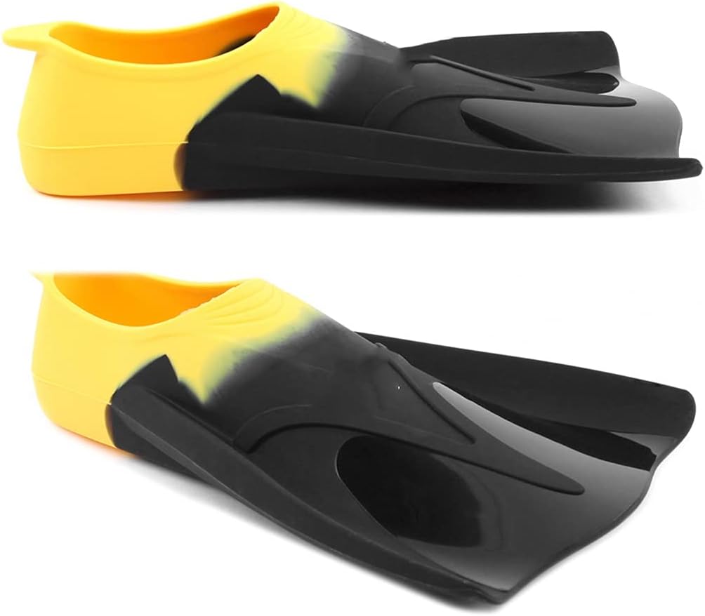 1. SOFT & FLEXIBLE foot pocket allows wearing diving socks for ultimate comfort while provide maximum stability.2. DRAIN HOLE outlet the water in time to effectively reduce the water resistance and improve speed forward.3. aircraft tail has a strong propulsion and concave design also increase stability. 4. SWIMMING TRAINING flippers increase kick resistance so as to improve strength of legs and flexibility of ankle.5. DESIGN for recreation in water, and a transparent pouch for convenient carry.Specification: Material: Silicone Color: Red & black / Yellow & black (optional)Size: L / S / M (optional)Weight: 642-878g / 1.4-1.9lbPackage weight: 688-925g / 1.5-2.0lb Package list: 1 * Pair of Diving Fins