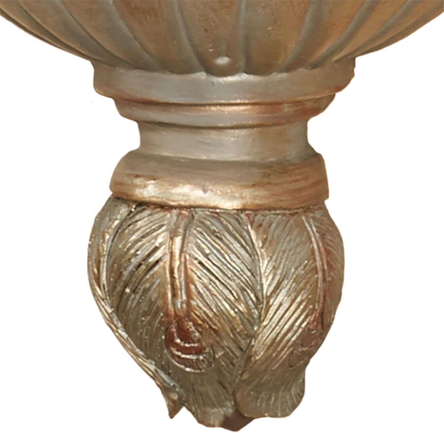 Garner attention with the splendid style of the Peacock Elegance Wall Shelf. Made of resin, this handpainted wall shelf features peacock feather designs and dimensional roses and leaves. Display shelf has a metallic champagne gold finish with copper highlights and a light gray wash. Measures 24 Wx7.5 Dx11 H. Designed by Touch of Class(R)! Beautiful, shapely wall shelf Displays your items with elegance Dimensional peacock feather and rose designs Handpainted unique finish.