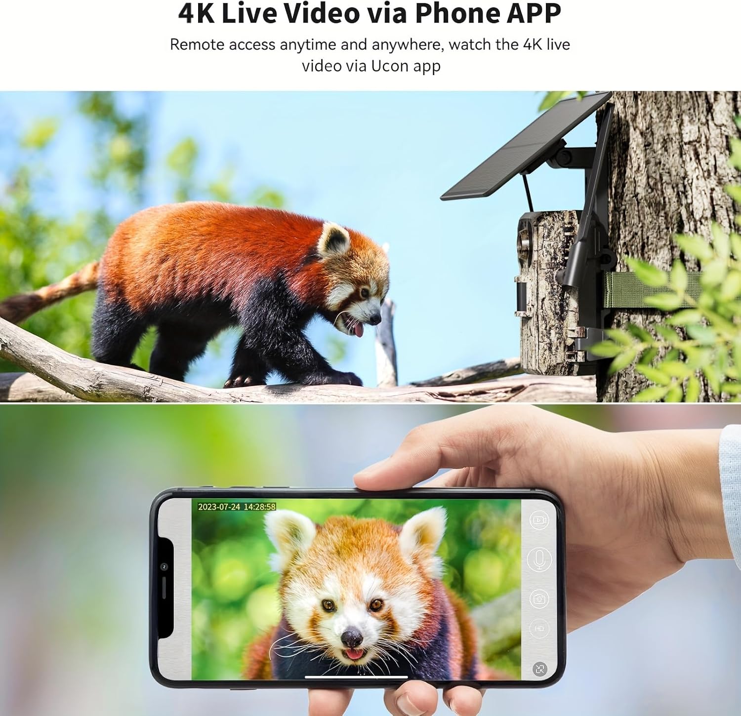 Experience next-level wildlife monitoring with this advanced 4G LTE cellular trail camera. Featuring live streaming capabilities and built-in SIM card functionality, this camera keeps you connected to the action in real-time through your smartphone. With an impressive 0.2-second trigger time, you won't miss any crucial moments. The camera boasts 2160p video resolution, night vision capabilities, and a detection range of up to 60 feet. Perfect for game monitoring and outdoor surveillance, this GMOX trail camera is designed to withstand the elements with its IP65 waterproof rating. The solar-powered system ensures extended operation, while app control puts all features at your fingertips. Wall-mountable and wireless, this camera combines convenience with cutting-edge technology. The package includes a charging cable for additional power options. Whether you're tracking wildlife or securing your property, this cellular trail camera delivers reliable performance in any outdoor setting.