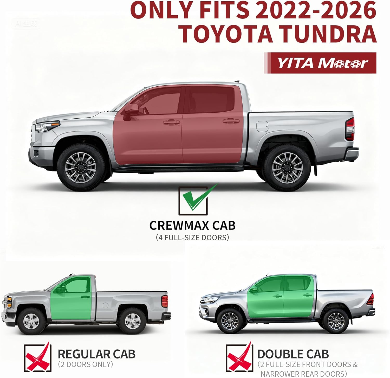 | Compatible with Vehicle Type | Compatible with 2022-2026 Toyota Tundra CrewMax Cab |